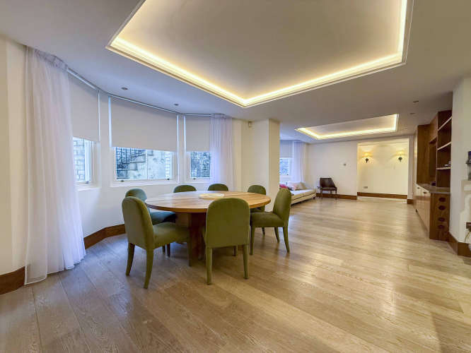 A spectacular, newly refurbished three double bedroom, three bathroom (all en-suite) lateral flat c.1,922 sq. ft. with private terraces, access to the stunning communal gardens and private underground parking available (subject to separate negotiation). The property has been completely redecorated and improved, ready for a new tenant. It benefits from its own entrance, accessed by iron gates with a video entryphone system, and is located on the lower ground floor of this well-kept period building. The stunning open-plan living accommodation has good natural light due to the generous ceiling height (2.3M) and large windows. The bespoke kitchen is very well equipped with top-end Gaggenau and Meile appliances and a gorgeous white composite worktop. Superb Chelsea location near Kings Road and Fulham Road with Gloucester Road and South Kensington underground stations less than 1 km away. New luxury beds and headboards, window dressings and 3 LG televisions and a soundbar. Superb security with video entry phone. Lots of storage. Available partly furnished from 7 January 2026.