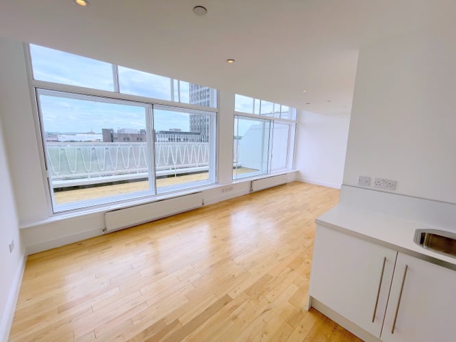 Available for a single professional is this beautifully presented, STUDIO apartment located within the popular Exchange building on the fourth floor. The apartment comprises of an entrance hallway leading to a modern bathroom with shower over the bath and a white suite. A spacious open plan living room/ kitchen with oven, hob, extractor and integrated fridge freezer. The spacious living area offers large windows with access to a large wooden decked roof terrace. This apartment is available now. Secure underground car parking can be arranged via the building’s concierge for an additional £50.00 per month. Tenants have use of a communal gym located on the ground floor. Minimum term let of 12 months. EPC Rating: C A suitable guarantor will be required for this apartment.