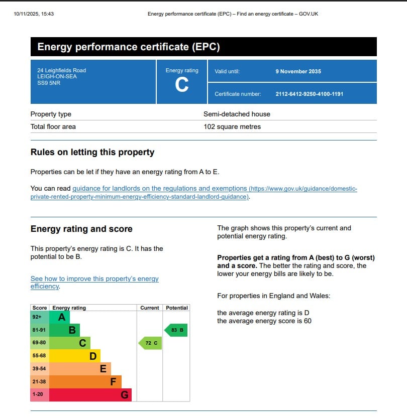 This spacious family home has been thoughtfully updated to enhance comfort and efficiency. A newly fitted bathroom adds a fresh, modern touch, while external wall insulation helps reduce heating costs and protects against heat loss and damp during the colder months (EPC rating C Nov 2025). A newly constructed driveway provides off-street parking for two vehicles. (Please note: the dropped kerb and crossover installation by Southend Council is expected to be completed soon.) Tucked away in a peaceful neighbourhood, the property enjoys a generous plot with a large, secluded rear garden. Council Tax Band: C.