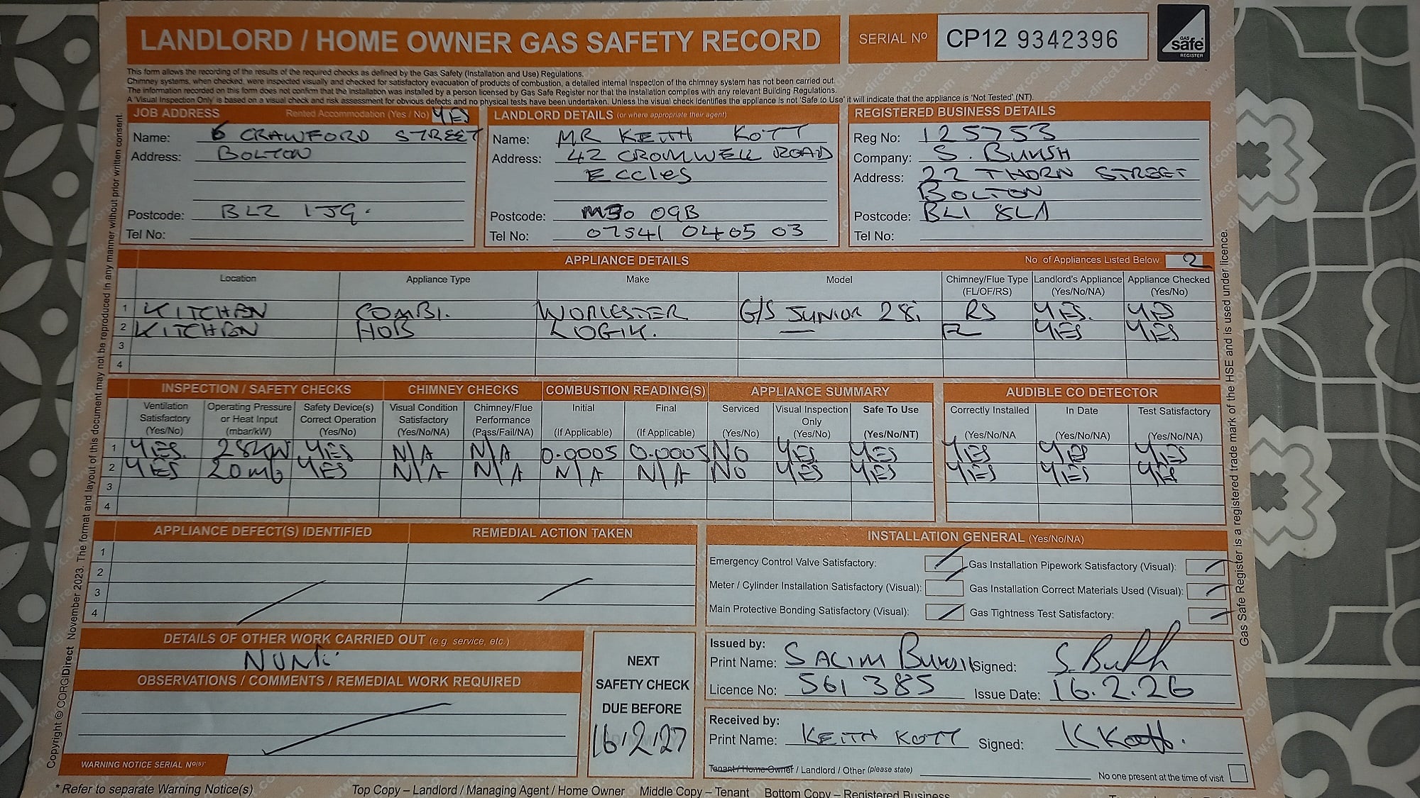 GAS CERTIFICATE