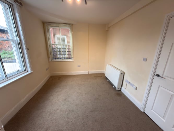 IDEAL FOR SHARERS. A recently refurbished two-bedroom first-floor apartment ideally located in the heart of the town centre, just a short walk from shops, restaurants and the train station. The accommodation includes an entrance hall with storage cupboard, an open-plan kitchen and living area with electric oven and hob, fridge freezer and washer dryer, together with two double bedrooms, each benefitting from its own modern en-suite shower room. The property also features secondary glazing, fitted blinds and modern electric storage heaters. Available from 5th June 2026 on an Assured Periodic Tenancy. Council Tax Band A.