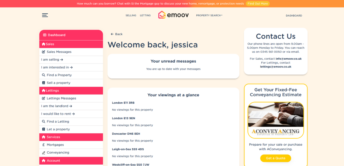 We’ve been busy behind the scenes designing a brand-new dashboard to make navigating Emoov smoother, faster, and more enjoyable. With a cleaner layout and powerful new features, managing your property journey has never been easier.
