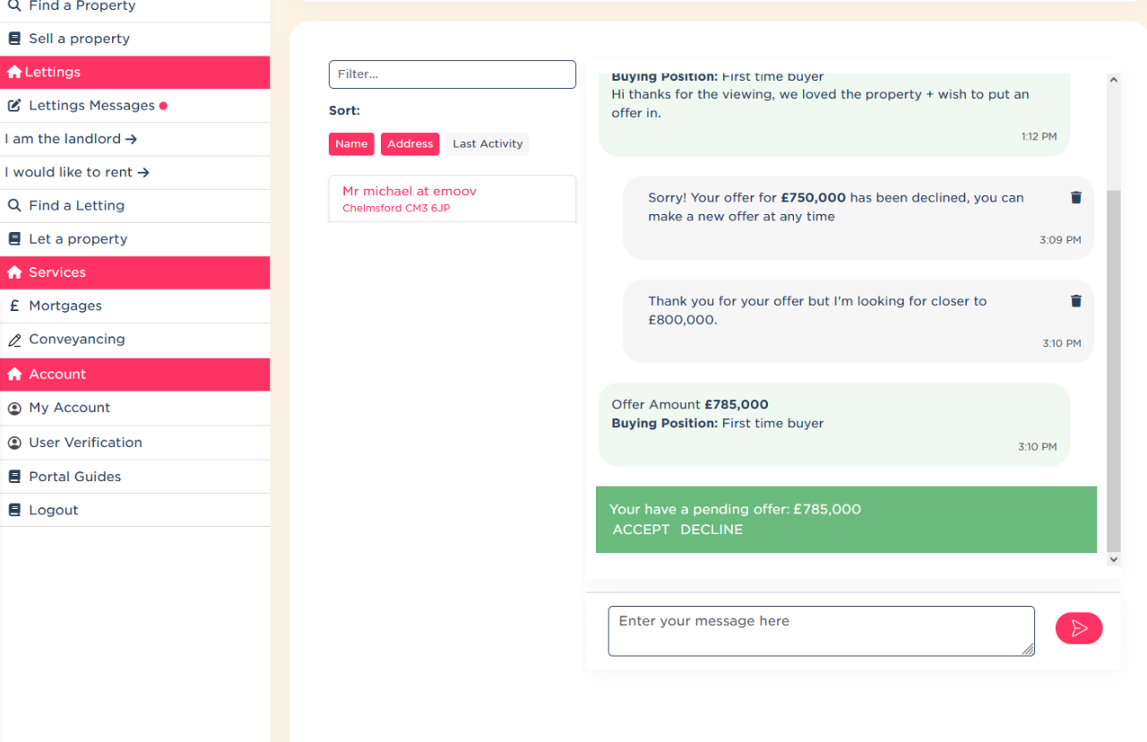 Your Messages section is designed to keep everything simple, organised and transparent. By keeping all buyer communication in one continuous thread, Emoov makes it easier to manage enquiries, arrange viewings and negotiate offers without unnecessary complexity.