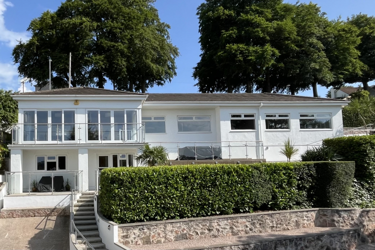 A four double bedroom detached property with open countryside and sea views across the valley, Torbay and Lyme Bay. LOCATION Sunnyside is situated in the highly desirable Lincombes area of Torquay. It is in close proximity to the village of Wellswood with its local shops, post office, restaurants and its many amenities. It is within walking distance of Torquay town centre, the harbourside, local beaches, including Meadfoot beach. Lovely wooded walks can be found in the nearby Lincombe woods and Ilsham Valley. Torquay is situated on the South Devon Coast and is known as the English Riviera. It is home to many local landmarks, attractions and amenities, including Tor Abbey, Kents Cavern, Anstey's Cove as well as a great variety of beautiful beaches. DESCRIPTION A fully renovated and refurbished versatile detached four double bedroom property with two spacious reception rooms, all overlooking the front aspect with fabulous views. It has two bathrooms and a separate WC, a modern shaker style kitchen with a separate utility room and a loft. It has the benefit of UPVC double glazing and gas central heating. Two gated driveways provide ample off-road parking. The property is set within its own enclosed, private attractively landscaped secluded gardens with multiple outside entertainment areas. All with wonderful views overlooking the wooded slopes of the valley, with sea views over Torbay, Lyme Bay and the countryside beyond. ACCOMMODATION The property is accessed via steps enclosed by stainless steel and wire balustrade which rise to a terraced area adjacent to the front door, enclosed by stainless steel and glass balustrade and sheltered by the balcony. The front door opens into the light and spacious entrance hall. With doors leading off to bedroom four, the shower room and the walk in cupboard/wardrobe. Stairs rise to the living room which is light and spacious due to its triple aspect with fabulous open views overlooking the lovely landscaped gardens, valley, Torbay, Lyme Bay and the countryside beyond. These views can be further enjoyed on the balcony, enclosed by stainless steel and glass balustrade, accessed by the two four pane sliding patio doors. Two doorways leading off to the hallway provide access to all other rooms in the property, the garden and entertainment areas. The kitchen has a range of shaker style wall and base units with solid oak worktop. There is space for a cooker with extractor fan over, space for a fridge/freezer and space and plumbing for a dishwasher. The separate utility room also has a range of shaker style wall and base units with grey dapple slate laminate worktop and stainless steel bowl sink. There are spaces and plumbing for a washing machine and tumble dryer. The tiled family bathroom has a bath, separate shower, floorstanding vanity unit with sink basin and WC. The three light and spacious double bedrooms are all front facing with views overlooking the landscaped gardens, valley, Torbay, Lyme Bay and the countryside beyond. The sitting room is an exceptionally light and spacious double aspect room with views to the front, similar to the living room and bedrooms. A door opens into the separate WC. The French doors with side panels have views through to the side garden, Torbay and the countryside beyond. These give access to the sunny limestone paved patio, level lawned side garden and shingle area beyond, where the garden shed is sited. Access to all of the property, its surrounding landscaped gardens, decked terraces, parking and separate refuse and recycling area can be gained from here. OUTSIDE The property sits within its own beautifully landscaped terraced gardens with feature rock walls and shingle terraces to the front and rear. The mature hedging, trees, shrubs and fencing provide tranquility, privacy and seclusion. There are three level lawn areas to enjoy and a pretty pond for the wildlife. For entertaining there are two decked terraces, a front terrace and a balcony all enclosed by stainless steel and glass/wire balustrade with fantastic views. The sunny limestone paved patio, which stretches across the full width of side garden and shingle area beyond the lawn provide sheltered seclusion as well as lovely views. There are two gated driveways for ample off-road parking, with rear access gained from Higher Lincombe Road. A separate fenced and gated refuse and recycling area opens onto Higher Lincombe Road for ease of collection. USEFUL INFORMATION Local Authority: Torbay Council Council Tax Band F Services: Mains Electricity, Gas, Water and drainage, Full Fibre Broadband Tenure: Freehold Rail links to London Paddington via Torquay and Newton Abbot Newton Abbot 7 miles Exeter 25 miles Exeter Airport 26 miles Plymouth 35 miles