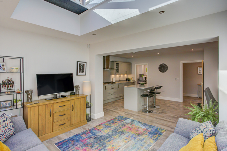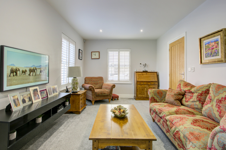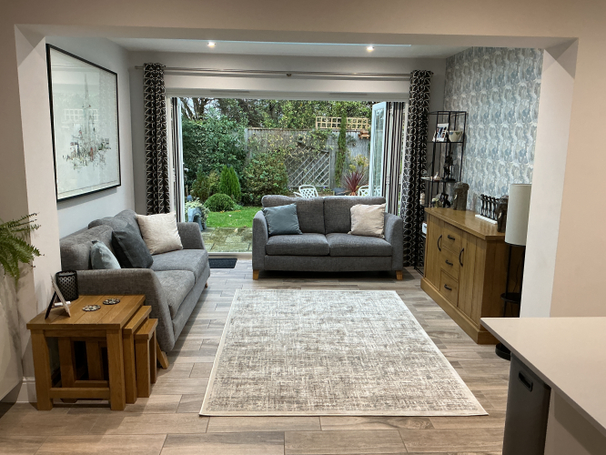 4 bifolding doors to garden. Skylight in ceiling with purpose built pull across sun shade. Ceramic flooring with underfloor heating. Power sockets plus USB charging port. Wired TV aeriel socket outlet Individual room heating temperature control.