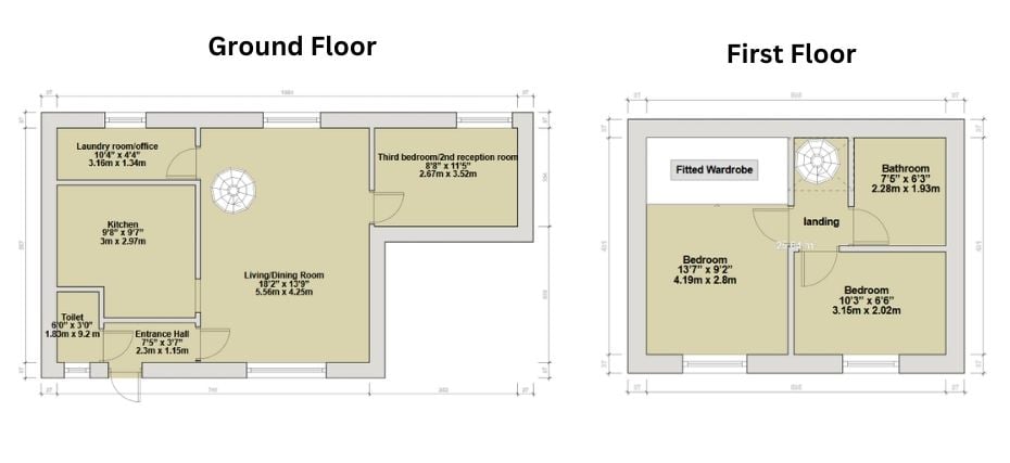 Dual aspect living room with a cast iron fireplace and closed fireplace, oak flooring and feature spiral staircase leading to the first floor. UPVC double glazed sash window to rear aspect, UPVC double glazed window to front aspect, two large radiators.