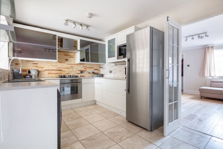 Key features: no onwards chain | freehold | allocated parking spot | smart thermostats (Tado) | space for front bike shed | custom-made blackout curtains in master + loft bedrooms | front outhouse/ shed. Fully modernised family home, 3 minutes’ walk to Rotherithe station (overground) and 5 minutes to Canada Water station (underground). The property has been extended, with the addition of a second lounge/ bedroom with en suite and another en suite loft bedroom. Council Tax Band: E. • Ground Floor: spacious and well-proportioned bright lounge finished in quality wood flooring. Kitchen diner with Italian marble tiled floor, gloss white cabinets, Bosch built in microwave, Smeg oven, and Franky sink. Marble floored second lounge/ 4th bedroom (can also be used as home office), with glass roof lantern, and en suite fully equipped marble bathroom. French doors give way to an attractive patio. • First floor: bright and airy master bedroom with wood floors, large custom built triple wardrobe, floating shelves and full length glass enclosed opening bay window letting. Marble lined family bathroom finished with high quality fixtures, including walk-in shower cubicle and bidet toilet. Second double bedroom looks onto enclosed peaceful setting, which can also be used as a home office. Both rooms are lockable. • Second floor: third double bedroom and third full bathroom, finished with high quality fixtures. Separate storage closet adjacent to the bedroom. • Outhouse/ shed: located at the front of the house you’ll find a storage space (aka outhouse/shed), handy for tools, suitcases, etc. • Allocated parking spot: right in front of the house, can also be rented out for extra income. • Patio: large, tiled patio with Asgard metal bike shed included. A blank canvas to personalise to your preference.