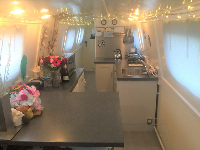 Beautiful, one-bedroom houseboat with mooring in a secure private marina on the Regents Canal, with CCTV and coded gates. Dedicated berth so no need to move the boat like continuous cruisers on the canal bank. Perfect permanent home or London Pied a Terre. Just 5 mins walk to Kings Cross and St Pancras Stations and all the new developments like Granary Square and Coal Drops Yard. Smart and fully fitted. Mains water, electricity, TV, phone and broadband connections. Gas hobs. Isuzu diesel engine. Neighbours are friendly and a mix of professionals and students. I loved living on it for 4 years, having never previously lived on a boat. Cozy in winter due to good insulation, electric heaters and wood burning stove for that extra heat and atmosphere! Feels like being on holiday every day. Consists of an open plan living room / kitchen, double bedroom and bathroom. Great shower and proper toilet – not a cassette. Outdoor space on front and back of boat, as well as a communal / BBQ area in the marina. I have rented it out since I moved off it and it has all the requisite safety certificates, licenses and insurance to show that it is up to spec. Residents car parking permit available from Islington Council. Annual mooring fee of £14,000 to the Canal and River Trust plus canal license fee of £1400