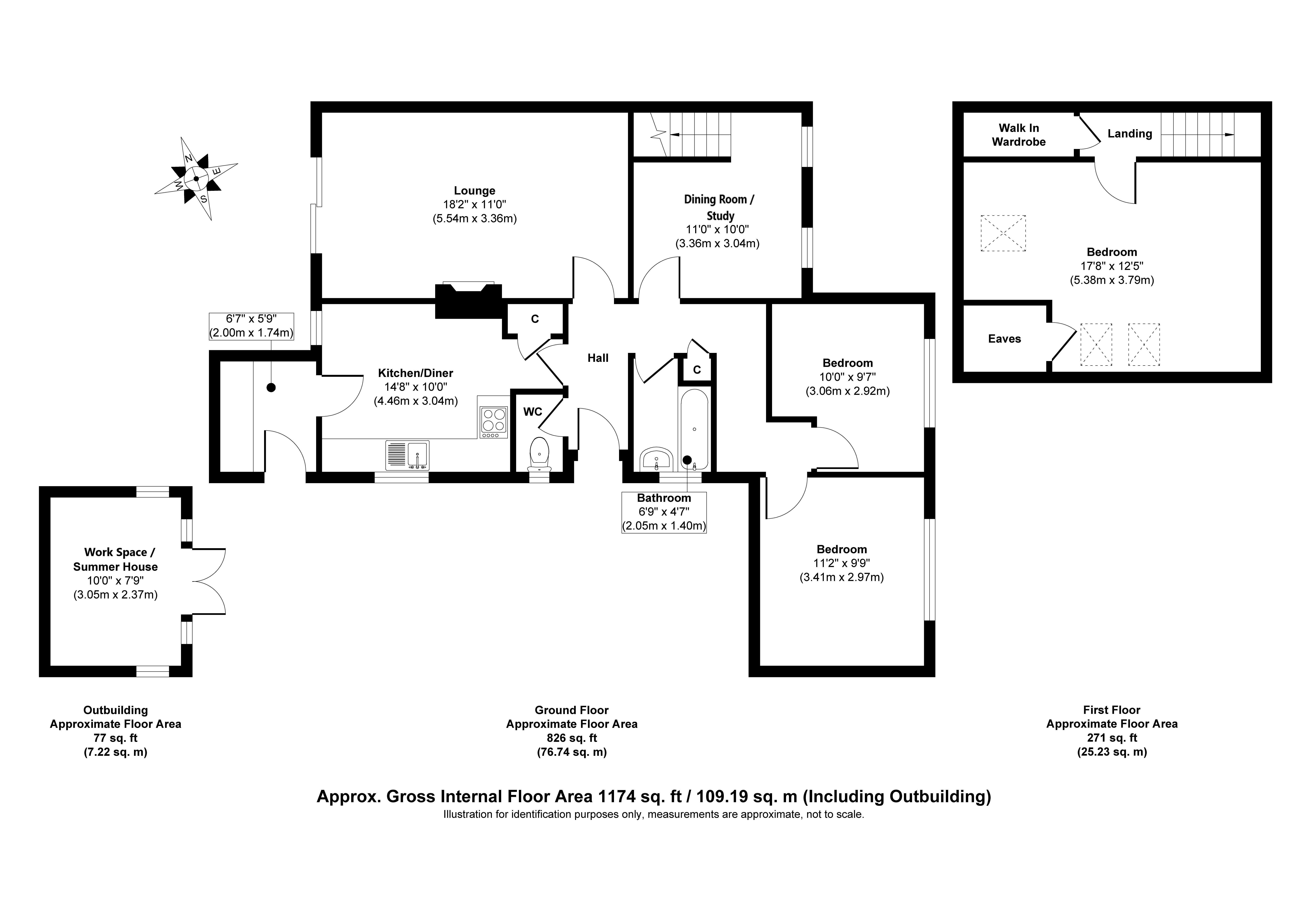 An adaptable room, currently used as a study but has previously been used as a dining room. Stairs leading to Bedroom 1