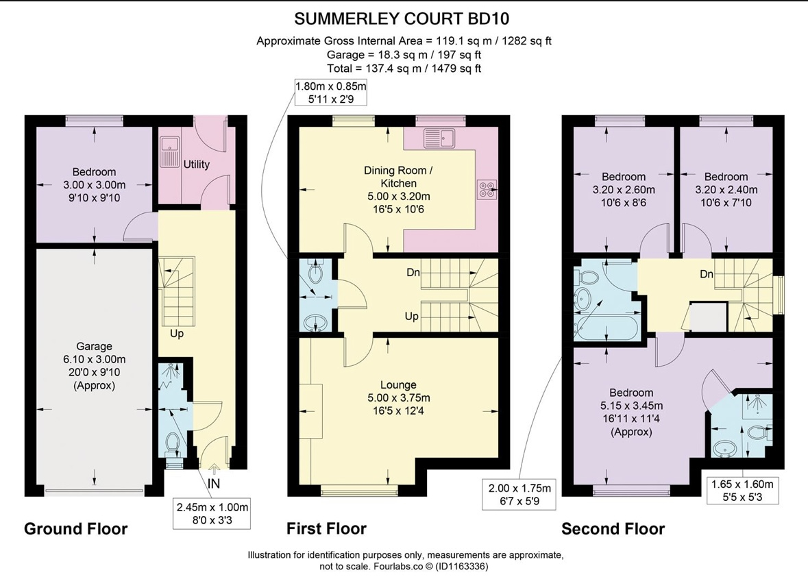Beautifully presented townhouse. 4 bedrooms. 4 bathrooms. Kitchen diner, living room, 4 double bedrooms, utility room, gardens front and back, garage and parking for two cars. Close to excellent schools, shops and Apperley Bridge train station.
