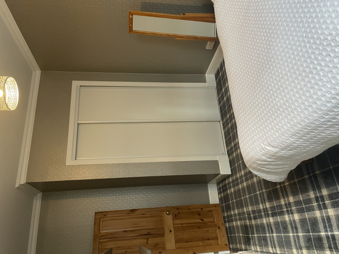 Double room with integral single wardrobe with louvre door. Rear facing window which gives access onto roof space with small exclusive sitting area.