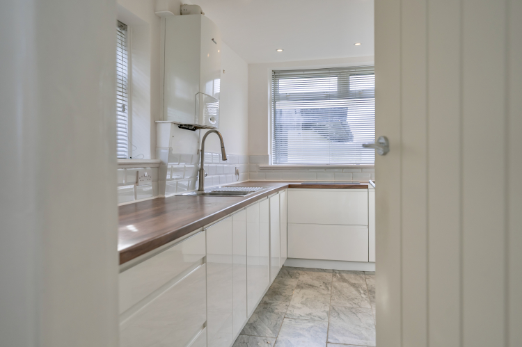 - Back to brick refit with a modern finish. - White gloss handless Wren kitchen cabinets fitted. - Integrated high energy efficiency appliances (dishwasher, oven / microwave, induction hob) - New electrics, plumbing and insulation fitted. - Freshly decorated and tiled. - Smart lighting.