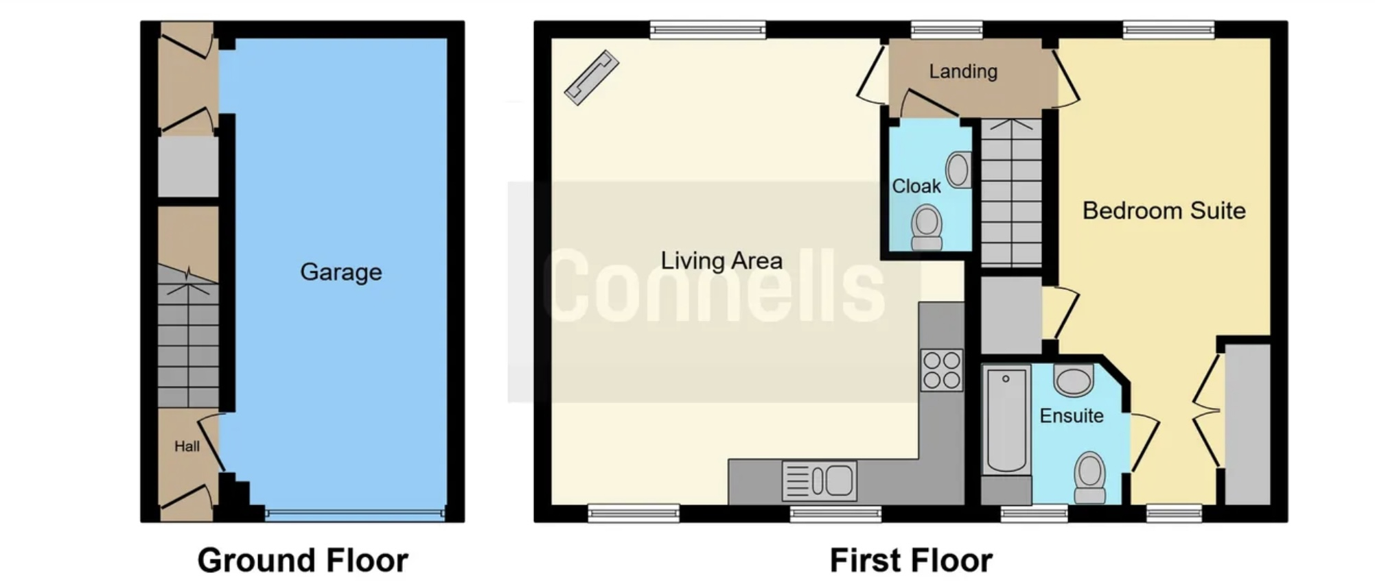 Large modern garage with up and over door, power, lights and water supply. There is also a personal door to the front hall and further access to the rear hall and understairs storage cupboard.