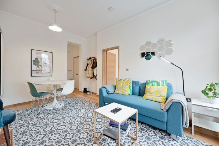 Immaculate, bright, one bedroom 1st floor flat overlooking the Kings Road in Alexandra Mansions, SW3, with wooden floors, high ceilings and a modern kitchen and bathroom. On a long lease of 140 years, feature fire places in the reception room and bedroom, and ample storage in both. Contemporary kitchen with modern appliances and a limestone-tiled bathroom with a shower over the bath and storage. The windows to the front have secondary glazing. The property has a bright aspect overlooking Kings Road and its fantastic shops, bars, restaurants and transport links.