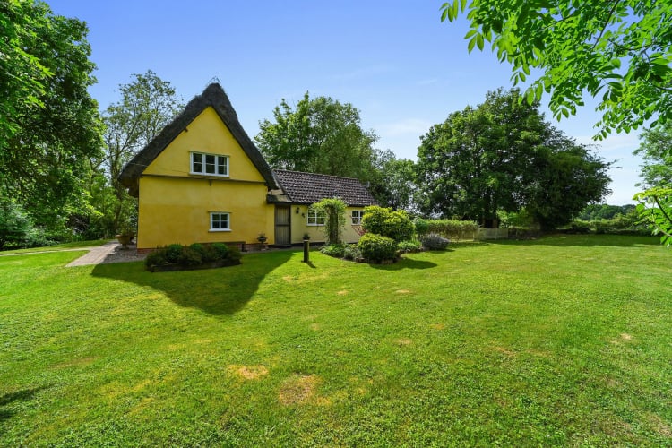 Nestled within the idyllic Suffolk countryside, Faith Cottage in Smallwood Green, offers a rare opportunity to own a piece of English history. This enchanting Grade II listed thatched cottage dates back to around 1488, and from the moment you arrive, its timeless character and rural charm are immediately evident. Set within approximately half an acre of beautifully tended gardens, the property exudes warmth, tranquillity, and the quiet elegance of a home that has stood for generations. As you step inside, you’re greeted by a rich tapestry of original features. Exposed beams, soft plaster walls, and wood-burning stoves evoke a sense of heritage, while thoughtful modern touches ensure comfort and ease. The ground floor hosts a beautifully fitted kitchen and breakfast area, where underfloor heating adds a touch of luxury. With integrated appliances, plentiful storage, and French doors opening onto the garden, it’s a space designed for both relaxed mornings and entertaining guests. The cottage flows effortlessly into two welcoming reception rooms — a dining area perfect for slow Sunday lunches and a cosy sitting room where the fire crackles on winter evenings. The ambiance is one of relaxed sophistication, with every detail enhancing the sense of home. Upstairs, two charming bedrooms — one double and one twin — offer peaceful views across the surrounding fields. The bathroom, located on the ground floor, features a traditional roll-top bath and walk-in shower, creating a spa-like retreat. The quiet village of Bradfield St. George is surrounded by gentle rolling countryside and ancient woodland, with the nature reserve at Bradfield Woods just a short stroll away. The vibrant market town of Bury St. Edmunds is only fifteen minutes by car, offering boutique shopping, independent cafés, fine dining and rich cultural experiences. For those who commute or enjoy weekends away, Thurston station is under fifteen minutes away, with direct links to Cambridge, Ipswich and London. Whether you’re looking for a full-time residence filled with heritage and comfort, or a weekend retreat to unwind and reconnect with nature, Faith Cottage promises a lifestyle of understated luxury and timeless appeal in one of Suffolk’s most serene rural settings. Mains electricity & water - Drainage is via a private sewage treatment plant. Council Tax - West Suffolk District Council - Band D