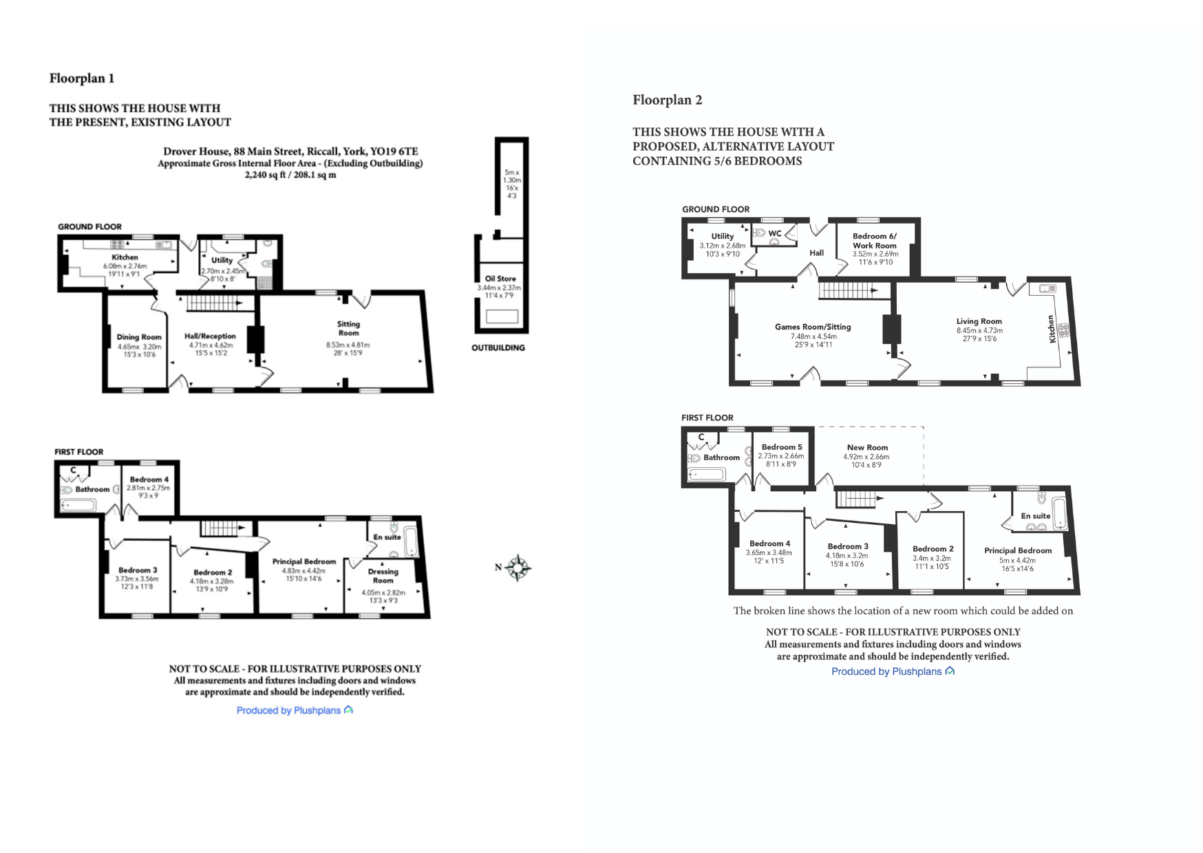 An outstanding, 4 bedroom Georgian house situated in the popular village of Riccall which may be converted to 5 bedrooms, see Floorplan 2. The house is an impressive example of Georgian architecture thought to have been built around 1790. It was originally the Drover`s Inn, as recorded in 1823, (See Photo 12) and as such would have provided accommodation for drovers taking their stocks of "droves of cattle, hogs and sheep" to markets in the south. Before the advent of railways such stock went to market on the hoof. The Inn has been converted to a wonderful family home with original period features. It is located in the Conservation Area in the heart of the sought after village of Riccall and offers the buyer an opportunity for improvement as to their own inclination. Entry is through an impressive reception room which contains a superb beamed ceiling and this leads through to a dining room, separate kitchen and utility. The spacious 28 ft long sitting room overlooks the garden and contains original beams and an open fireplace. Upstairs there is a large principal bedroom with walk in dressing room and an ensuite bathroom. There are two additional double bedrooms, a single bedroom and house bathroom. The house is oil heated. Outside, to the rear, there is a secluded garden and at the side additional garden space which may be used for off road parking. There is potential to add an additional 330 sq. ft of floor space to the house with an additional room of around 130 sq. ft, (4.92 x 2.66 m), as shown on Floorplan 2 above the existing utility room subject to any necessary permissions. There is also a potential storage space in the loft of around 200 sq. ft.. The Floorplan 2 layout shows a spacious living room/kitchen with an adjoining 25 ft long room which may be used for additional sitting space, a games room or for any other purpose. There is no onward chain. Location Riccall has a flourishing village community which benefits from having a mini supermarket, doctors surgery, a primary school, child care services, sports facilities, playground, a Post Office, two public houses, restaurants, an ancient Church and the Regan Community Centre. Nearby there is public access to Skipwith Common, a national nature reserve, being a wild area of heathland, woods and lakes. Perfectly situated for commuters within easy reach of York Train Station and also to Selby Train Station (5 miles) with regular direct services to London Kings Cross. There are regular bus services through the village, walking routes and a direct cycle path to York and Selby. Ultrafast broadband is available. Checker.ofcom.org.uk gives details as to mobile reception.
