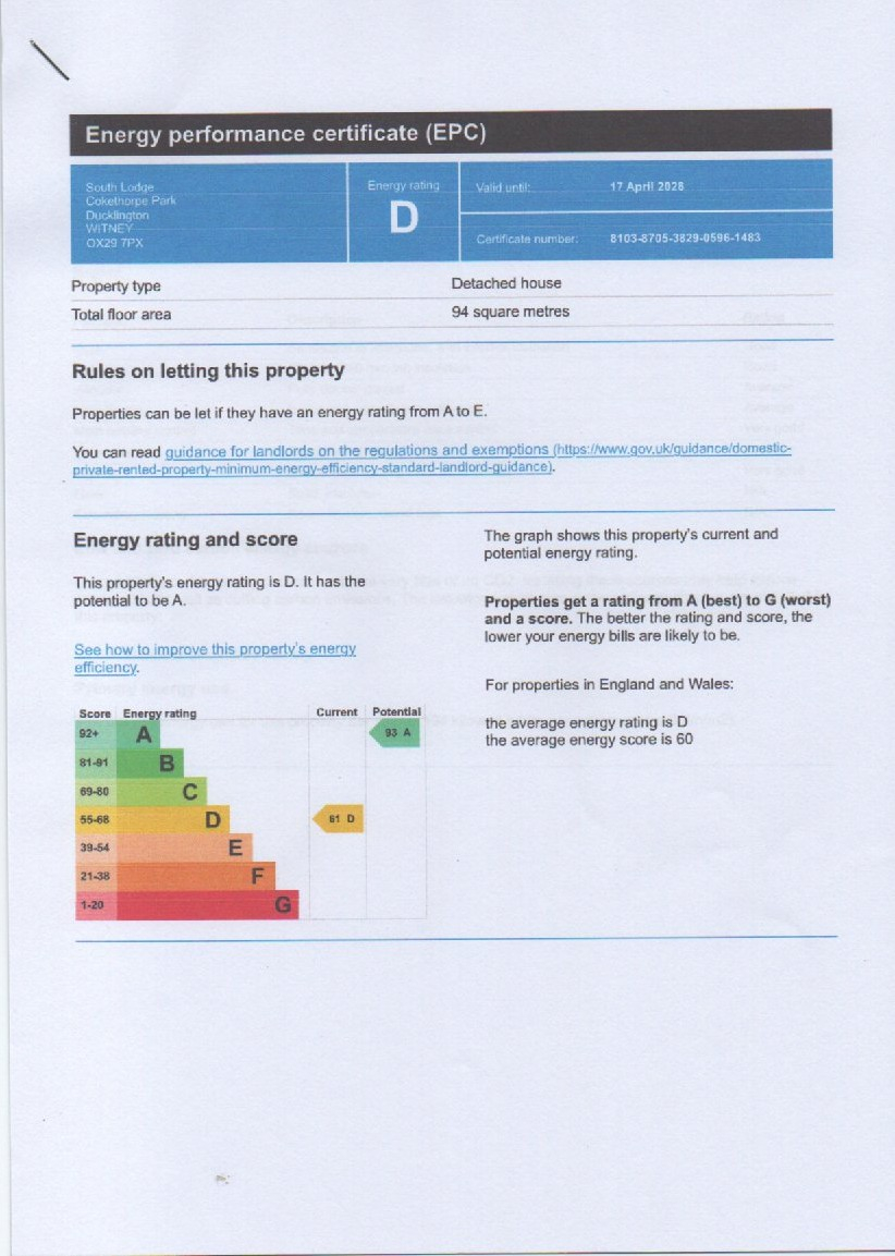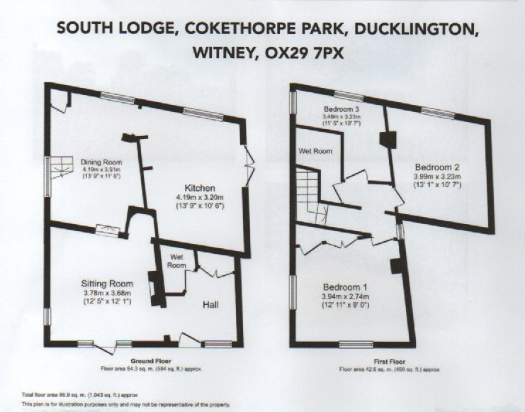 This is a unique three-bedroomed detached Lodge, formerly part of the Cokethorpe Park Estate, believed to be dated circa 1709. There is huge potential to extend and build on the extensive grounds – approximately 0.41 acres SPP (*the property is not listed) There is an electric gated entrance with ethernet connected CCTV & 150m tree-lined gravel driveway. In the grounds there is a large garden studio with electricity and a heater/ air con unit, a garage/ workshop with electric roller shutter, two oak timber carports, and a wooden framed greenhouse. There is plenty of parking for several vehicles. The beautiful, landscaped grounds have pear, plum, crab apple and fig trees, with a small brook flowing through the middle, over which there are two small wooden bridges. There are beautiful views over farmland. The south-west side of the property (the back of the house) is adjacent to the A415, and lies between the village of Ducklington and Hardwick. It is only a five-minute drive from the pretty market town of Witney. Inside this impressive character home there is double and secondary double glazing throughout the house – ensuring a very quiet and peaceful living space. There is an original ‘walk-in’ fireplace with hidden baker’s oven, original wooden beams throughout, two wood burners, underfloor heating downstairs and in the upstairs wet room Downstairs there is a lobby, wet room, lounge, dining area and kitchen. Upstairs there are three bedrooms (presently used as a bedroom, office, and dressing room), two of the rooms have fitted/ mirrored wardrobes and loft space. There is another wet room. Measurements for the outbuildings: Detached garage/workshop 5.30m x 5.50m Both oak timber car ports 2.65m by 5.50m Garden Office 5.20m by 3.40m Wood-framed Greenhouse 3.20m by 2.20m The total floor area 96.9 sq. m. (1,043 sq. ft.) approx. Services: Mains water and electric are connected to the property. Septic tank drainage and oil-fired heating (no mains gas). High speed broadband and VoIP home phone provider is Gigaclear The property is NOT a flood risk. Council tax band C Tenure: Freehold Directions: From Witney proceed in a southerly direction on the A415 past the village of Ducklington. The long entrance drive to the property is on the left-hand side on the bend just past the entrance to Cokethorpe School.