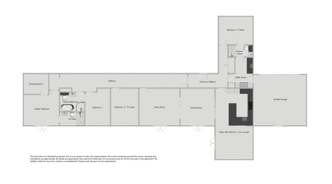 Jack and Jill doors to Bedroom 4 / Study and Utility Room - Fully tiled walls and floor - Wet room style shower area with fixed glass screen and rainfall shower - Concealed cistern WC, soft close lid - Wash hand basin integrated into granite worktops