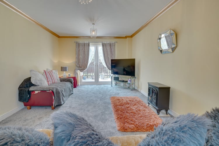 The Lounge has a featured bay window to the front with patio doors to the rear, complete with two radiators. With four double sockets, media points & Telephone socket.
