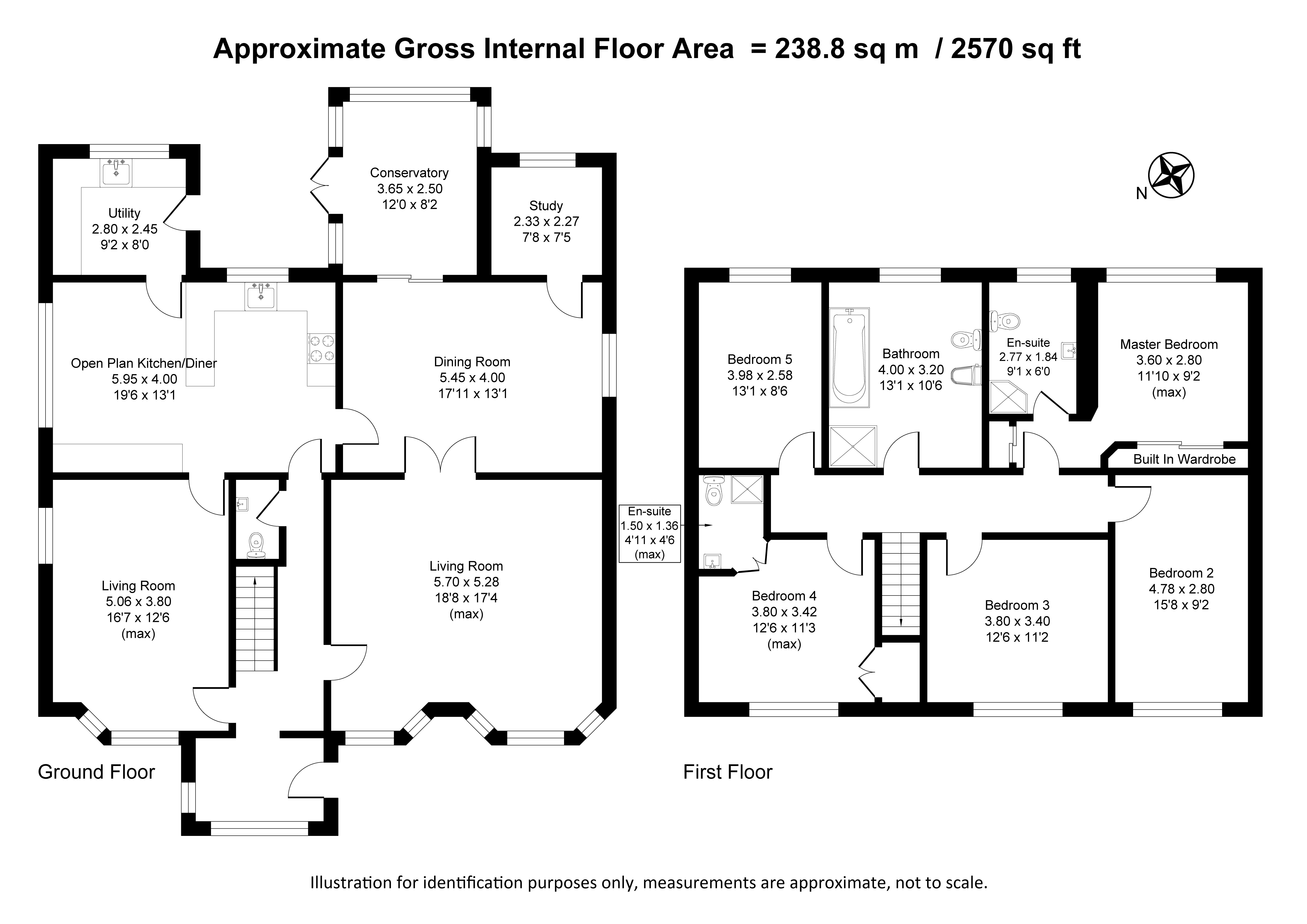 Recessed light fittings and two side lights, double radiator, double glazed windows, carpeted, fully fitted with walk in wardrobe, built in dressing table with drawers and shelves, built in bedside cabinets with drawers, doors to landing, to ensuite and walk-in wardrobe.