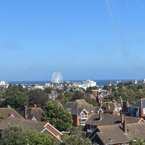 Radiator. Wall mounted electric heater. Coved ceiling. Fitted unit with fixed shelving. Laminate flooring. Patio doors to - Sun Balcony - With stunning views over Eastbourne towards the sea.