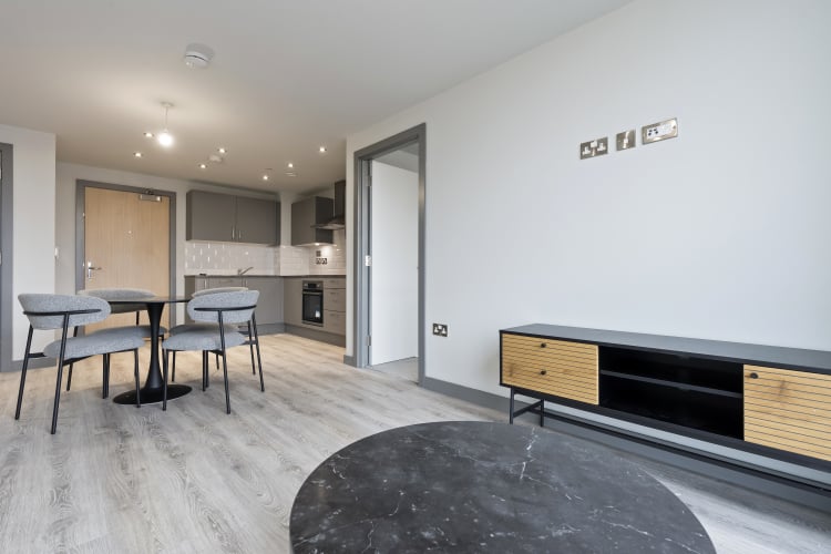 We are delighted to present this stunning two bedroom, two bathroom modern luxury apartment. JQ Rise is a new built development occupying one of the best investment locations in Birmingham. This property is located just ten minutes walk to the business and financial districts of Brindley Place, Arena Central and Colmore Row. It is offering extraordinary views and unrivalled city centre access. The property boasts a thoughtfully designed layout, featuring open-plan living and dining areas complemented by a fully integrated kitchen with high-quality appliances. The master bedroom includes an en-suite shower room, while the main bathroom features a bath and shower combination. Additional conveniences include a separate utility room housing the washing machine. Length of lease: approximately 100 years remaining Service charge: circa £2000 per annum Ground rent: £113.00 per annum