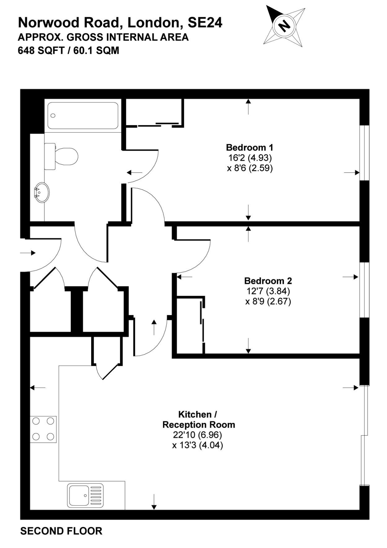 This is the first time the property has come back to the market since being built in 2008. A spacious and well-proportioned modern 2 bedroom apartment. You have a choice of 2 entrances to the building and once in, you walk through well maintained communal spaces, then up two flights of easy access stairs to the property. When inside, the hallway features 2 spacious cupboards containing storage, as well as a new fusebox and boiler. From here on there is solid Oak flooring throughout, apart from the tiled bathroom floor. From the hallway, on the left you have a 'Jack and Jill' bathroom (has 2 entrances), 2 bedrooms in front and a large open plan kitchen/diner/lounge to the right. The apartment had a full makeover in 2024 so the kitchen has a new dishwasher, washing machine and induction hob, as well as an oven and a tall fridge freezer. All appliances are Bosch or AEG. New LED over counter lighting, as well as new LED ceiling lights throughout were also installed. Adjacent to this is space for a dining table. The lounge area of the room has a large sliding glass door with Juliet balcony overlooking the artists studios in the railway arches. Given its position it gets plenty of natural light as well as privacy. Whilst the train line is in close proximity, there is little noise and has never proved an issue as they travel at slow speeds here, and not into the night. There are 2 double bedrooms, both with built in wardrobes, and one with access to the bathroom, so it can be used as an en-suite or closed off as needed. The bathroom has a full-size bath with overhead shower, along with a toilet and pedastal basin. Once you go back out into the communal corridor, at the end is another staircase that takes you up to the large communal roof terrace. It has several picnic tables, and is a lovely spot to watch the sunset over Brockwell Park which is just across the road. When you exit the building downstairs, there is a gated bike storage area, and a gated underground car park with an allocated and easily accessible space. There are 33 flats in this building and only 9 have parking spaces, with no on-street parking this is a big bonus. The electrical fuse boxes are also in the car park, so it may be possible to fit an electric car supply. The flat was built in 2008 with a 999 year lease. It has an annual ground rent of £400 which doubles every 15 years, next doubling in 2038. Every apartment owner is made a Director of the Management Company to ensure it is occupier owned. It is run by 2 of the owners which keeps the costs low at £2015 per annum. You can volunteer to be more involved in helping or running the Company if you wish, but are not obliged to. This is a lovely modern property in a perfect location in Herne Hill, close to the shops, park, station, buses and cycle lanes. It is currently being rented at £1999pcm but tenants have served their notice. The property will be vacant and available for completion on or after 31st October 2025.