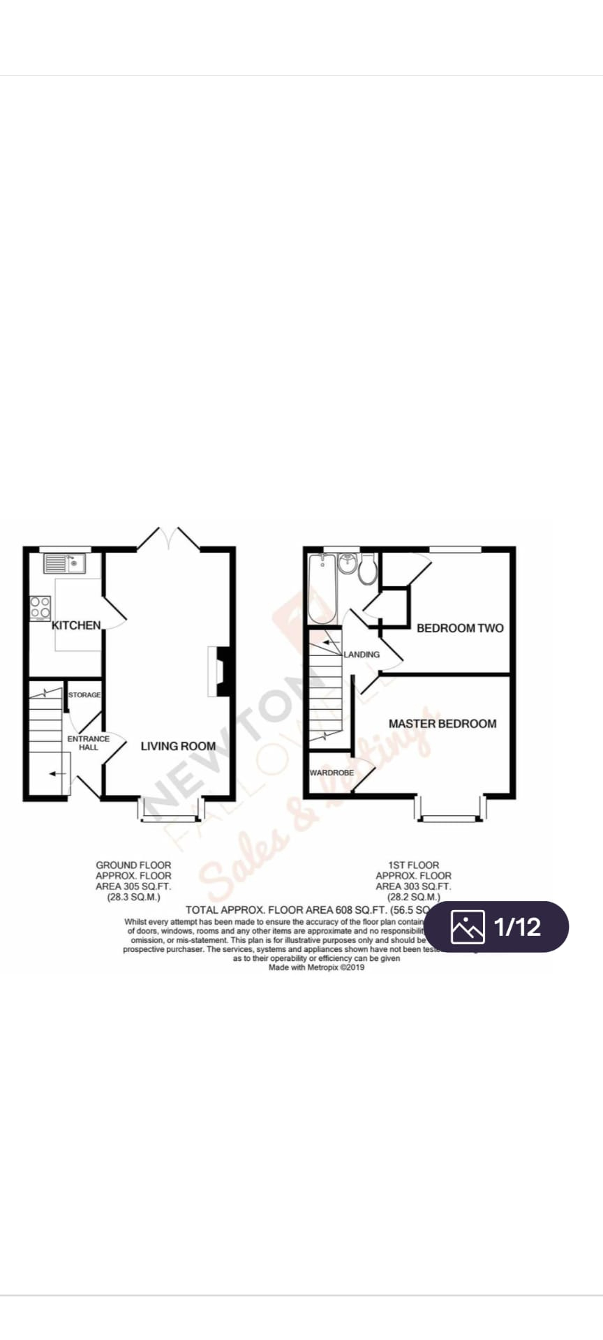 White bathroom suite with electric shower over the Bath. Airing cupboard with shelving. Fully tiled and electric heater.