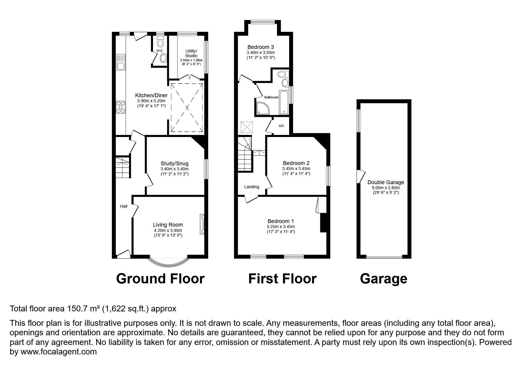 Comprises of three piece suite, WC, hand wash basin, Full size bath, and separate shower cubicle.
