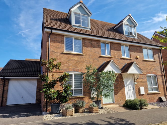A beautifully presented four-bedroom home with a secluded south-east facing garden and expansive master suite, set on one of Great Western Park’s most desirable roads. Raven Road enjoys a peaceful setting with excellent access to Didcot Parkway station, the A34, well-regarded schools, local shops, and green spaces - making it ideal for families and commuters alike. Inside, the ceramic tiled entrance hall leads to a well-equipped kitchen-breakfast room featuring sleek integrated appliances, an eye-level double oven, and a five-ring gas hob - perfect for home cooks and casual dining. A well-proportioned cloakroom and generous understairs cupboard, currently used as a pantry, enhance everyday convenience. The generous lounge-diner with an additional storage cupboard opens via French doors to a beautifully maintained, mature south-east facing garden that’s completely private and not overlooked - perfect for entertaining or relaxing with a quiet morning coffee. Upstairs, the first floor hosts two double bedrooms with fitted wardrobes, a third single bedroom / study, and a fully tiled family bathroom with shower over bath. Additional storage includes a hallway cupboard and airing cupboard. The top floor is dedicated to an impressive and spacious master suite, complete with wall-to-wall fitted wardrobes, Velux windows, and a stylish en-suite with large shower cubicle. Outside, driveway parking, a garage with light, power, and water, and gated side access add further practicality, and with foundations already in place for a future conservatory, the home also offers scope to extend and evolve with your lifestyle.