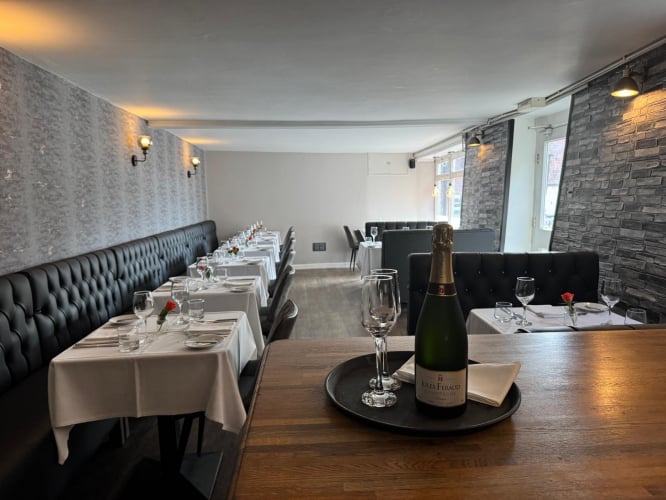 Karndean flooring, 2 radiators, large triple double glazed window overlooking the market place, set for 22 but space for 38 covers, custom built solid oak bar area with coffee machine, grinder, wash basin, wine racking, ice making machine and 2 under counter fridges.