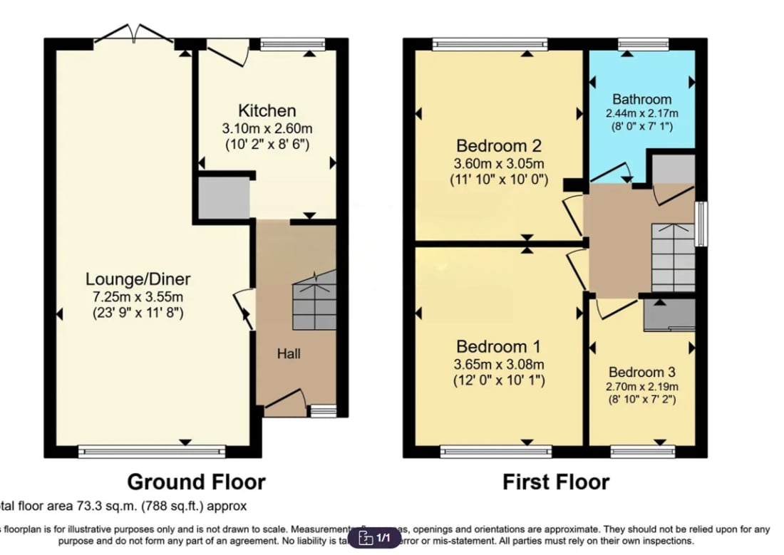 There is a small landing with a useful cupboard at the top of the stairs. Access to the loft with a loft ladder.