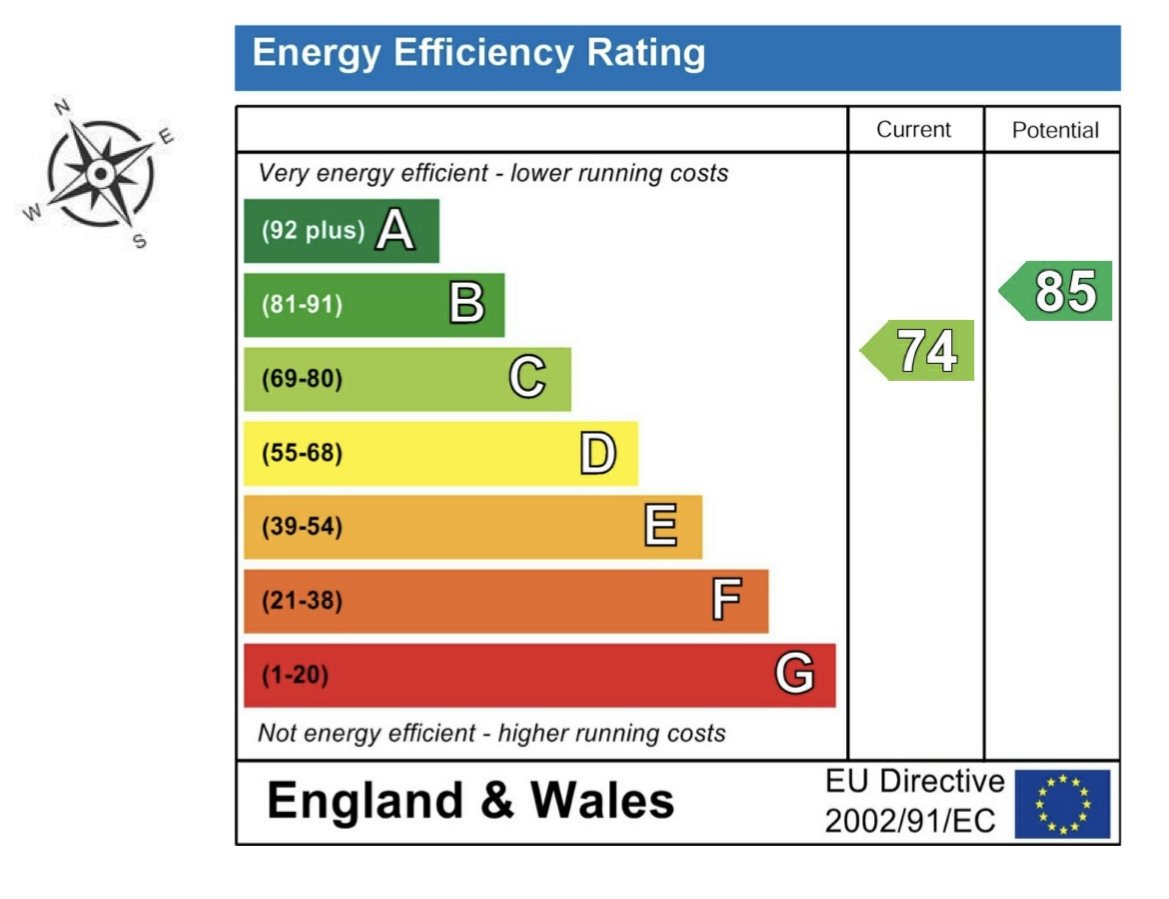 With tile effect floor covering, the suite consists of a shaped bath with full height tiling, screen and electric shower, dual flush toilet and pedestal washbasin with matching tiled splashback. Radiator and UPVC double glazed front window.