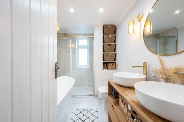 Behind the smart grey door awaits a home that blends period charm with modern design. The welcoming hallway leads to a serene bedroom with bespoke dressing room and indulgent en-suite featuring an elegant bath, matching his 'n' hers sinks and walk-in rain shower. A second double bedroom faces the front of the property, and across the hallway a sleek family shower room adjoins an additional third bedroom/study – perfect nursery or office. A relaxed central living room opens to a spectacular kitchen-dining extension. Skylights and full-width glazing flood the space with natural light. Crisp white cabinetry, warm wood floors and generous prep areas make entertaining effortless while enjoying garden views. Garden Oasis: Slide open the doors to a private, level garden framed by mature trees. Dine al-fresco on the patio, lounge in the hammock, or work from the detached garden studio with adjoining utility ready to become your creative workspace, gym or private guest suite. Location: Situated in a quiet, sought-after neighbourhood moments from the vibrant Stoneleigh Broadway, this address offers cafés, restaurants and shops on your doorstep, plus quick rail links to London Waterloo. Highly regarded schools and the expansive Nonsuch Park complete the picture, while the A3 and M25 provide swift routes to Heathrow and Gatwick. Firswood Avenue is perfect for professionals, downsizers or young families seeking a turnkey home with style, space and a superb commuter location. Viewing is highly recommended to appreciate the quality and taste of this renovation.