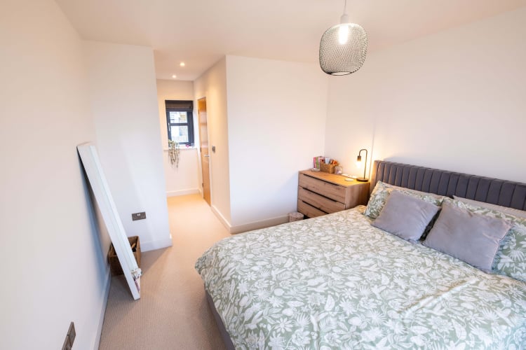 A double bedroom with fitted wardrobes and en suite. There is a small window to the front of the property and large window to the rear with stunning views.