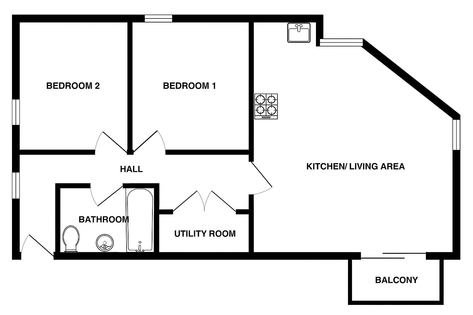 This bedroom has a Juliet balcony looking onto Cooperage Lane (the part that is parallel to Coronation Road).