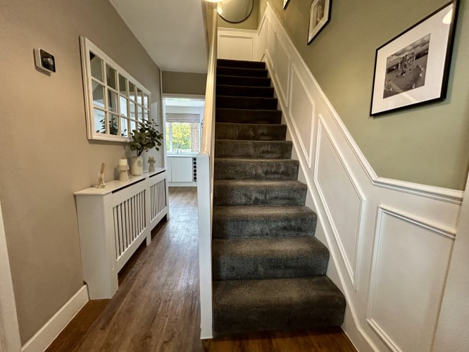 Situated to the rear of the property, the dining room provides the perfect setting for family meals or entertaining guests. A large window overlooks the garden, filling the room with natural light and offering a peaceful outlook. With easy access to the kitchen, it offers a seamless flow throughout.