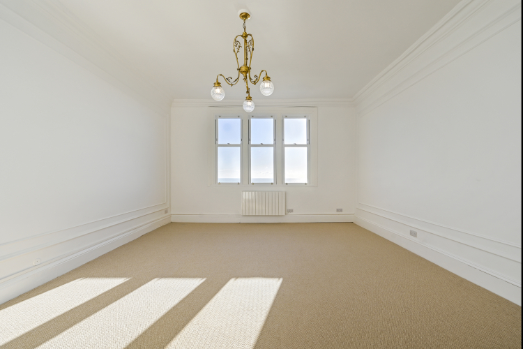 Positioned at the top of the The Grand, a Grade II listed building with full south facing protected views over the English Channel. Stunning big sky views from dawn to sunsets and surrounded by green spaces; The Leas Park, Terlingham Gardens and the Lower Leas Coastal park for lovely walks down to the Beach … the restored Leas Lift will soon bring you back up the cliffs to this extra-large (eight hundred + square feet) newly restored and updated one bedroom apartment, with potential to convert to a two bedroom apartment. Majestic, Iconic, Legendary, Famous, Renowned, Historic, Mythological are just some of the descriptions of this Grade II listed Edwardian building, in a prime location on The Leas at the top of the cliffs in the West End of Folkestone.. The Grand has housed Royalty, the famous & infamous, as well as war heroes, writers, artists and dreamers…. Survived the first and second world wars, scandals and political upheavals … Walking distance to the Harbor Arm, The Artists Quarter, the town center as well as to Folkestone Central Train station for high-speed train service to St Pancras in less than hour with a pretty much guaranteed seat all the way! As well as the wider South Eastern train network. Parking is readily available on The Leas, Garages have a waiting by separate agreement. The M20, is a 5 minute drive away for easy access to the National Motorways, the private Airport of Lydd for your private plane, helicopter etc. is a 30 minute drive away. The Channel Tunnel is a 15 minute drive away… The flat has been extensively updated and is now in move in condition. Extra-large rooms, high ceilings, restored original details …. And peace & quite at the top, just under the Yoko Ono “Earth Peace” morse code light that is on the top of The Grand. Offered for sale with NO forward Chain, call to arrange a private viewing.