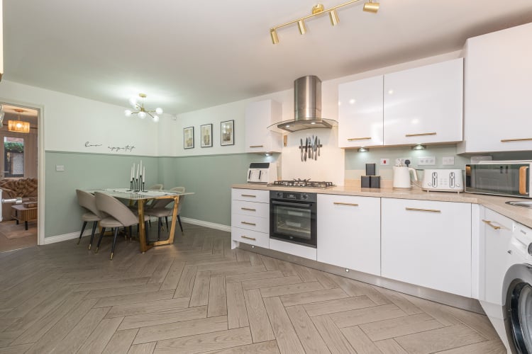Modern four bedroom townhouse presented to an excellent standard throughout, offering spacious and versatile accommodation ideal for families and professionals. Overview This attractive townhouse features three generous double bedrooms and a further single bedroom, providing flexible space for guests, children or a home office. The property benefits from a contemporary layout with separate reception space, modern bathrooms and off-road parking. Ground floor • Welcoming entrance hall giving access to the principal ground floor rooms. • Modern fitted kitchen with defined dining area, ideal for day-to-day living and entertaining. • Separate living room offering a comfortable reception space with views towards the rear garden. • Useful downstairs w.c., thoughtfully positioned off the hall. First and second floors • Three spacious double bedrooms plus a well-proportioned single bedroom, suitable as a study or nursery. • Principal bedroom served by a stylish en-suite shower room. • Contemporary family bathroom serving the remaining bedrooms. Outside space • Driveway parking to the front providing off-road parking for two vehicles. • Neatly astro-turfed rear garden offering a low-maintenance outdoor space for year-round enjoyment. • Garden includes a useful shed and a versatile log cabin, ideal for use as a workspace, studio or hobby room. Key features • Four bedroom modern townhouse with fresh, contemporary décor throughout. • Three double bedrooms and one single bedroom. • En-suite to principal bedroom, family bathroom and ground floor w.c. • Separate living room and kitchen/dining area. • Driveway parking for two cars and low-maintenance rear garden with log cabin and shed. This property offers a ready-to-move-into home that will appeal to buyers seeking modern accommodation with practical outside space and excellent work-from-home potential.
