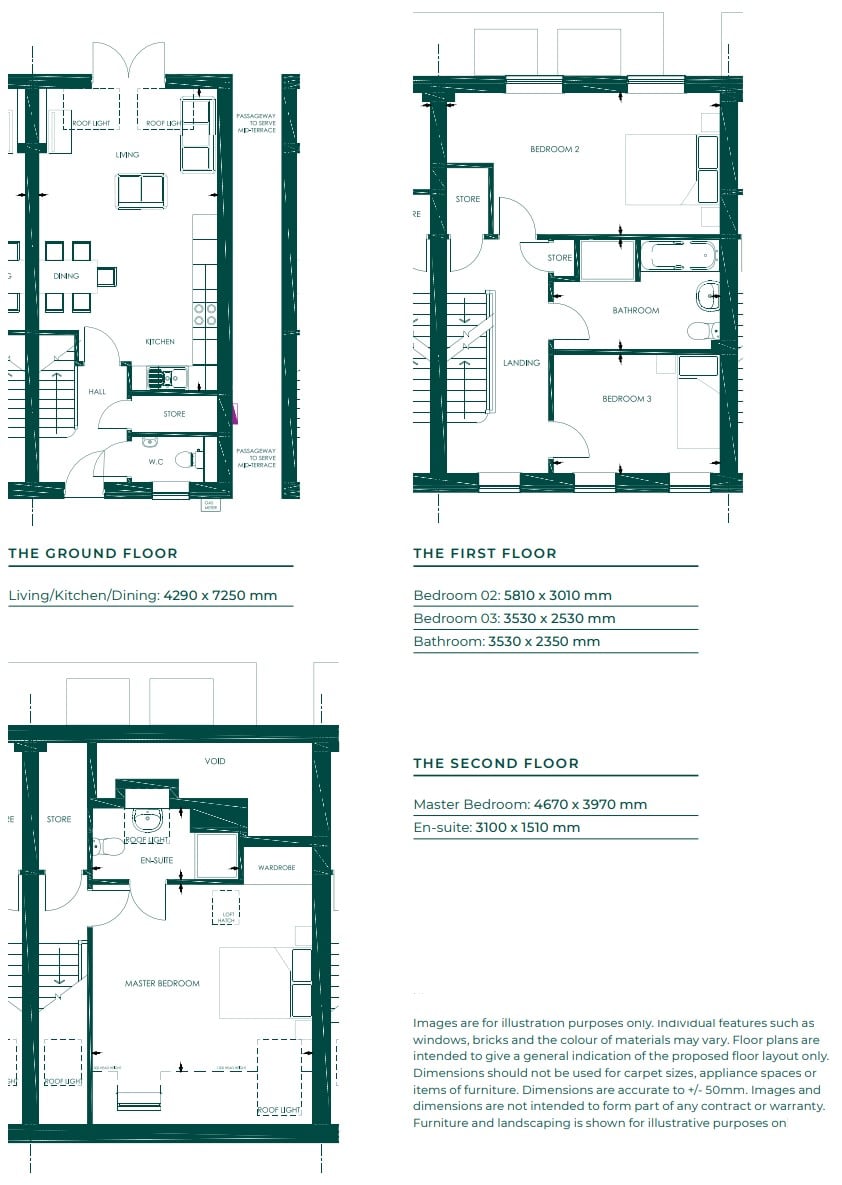 This beautifully presented three-bedroom terraced home offers two bathrooms and a stunning open-plan living space designed for modern living. The generous master bedroom features a stylish en-suite and a large Velux window, flooding the room with natural light. Throughout the home, light pours in, enhanced by a south-facing garden that creates a bright and uplifting atmosphere. The property features bespoke shutters on every level, stylish herringbone flooring to the first floor, and a top-floor automatic Velux window for effortless light and ventilation. The well-appointed kitchen is both stylish and practical, featuring an integrated fridge/freezer, eye-level double oven, four-ring induction hob, cooker hood, low-profile sink and convenient USB charging sockets. The kitchen floor is layed with beautiful bespoke limestone tiles. The property also has a spacious downstairs toilet. The spacious open-plan living area is the heart of the home, showcasing elegant white French doors and two Velux windows fitted with electric blinds. These open seamlessly onto the recently renovated south-facing garden, finished with a sleek white paved patio and high-quality artificial lawn — perfect for relaxing or entertaining. The perfect indoor / outdoor living space! In addition to providing access to the garden, the alleyway offers generous storage space for garden furniture and outdoor items. THE GROUND FLOOR Living/Kitchen/Dining: 4290 x 7250 mm THE FIRST FLOOR Bedroom 02: 5810 x 3010 mm Bedroom 03: 3530 x 2530 mm Bathroom: 3530 x 2350 mm THE SECOND FLOOR Master Bedroom: 4670 x 3970 mm En-suite: 3100 x 1510 mm Like most estates these days, every property has an annual service charge. The council tax band is C The location is perfect for commuting. Both Shrewsbury and Telford are within a 15-minute drive, while Wellington Railway Station and the M54 are just 5 minutes away, offering easy access to larger cities and a range of retail and leisure facilities.