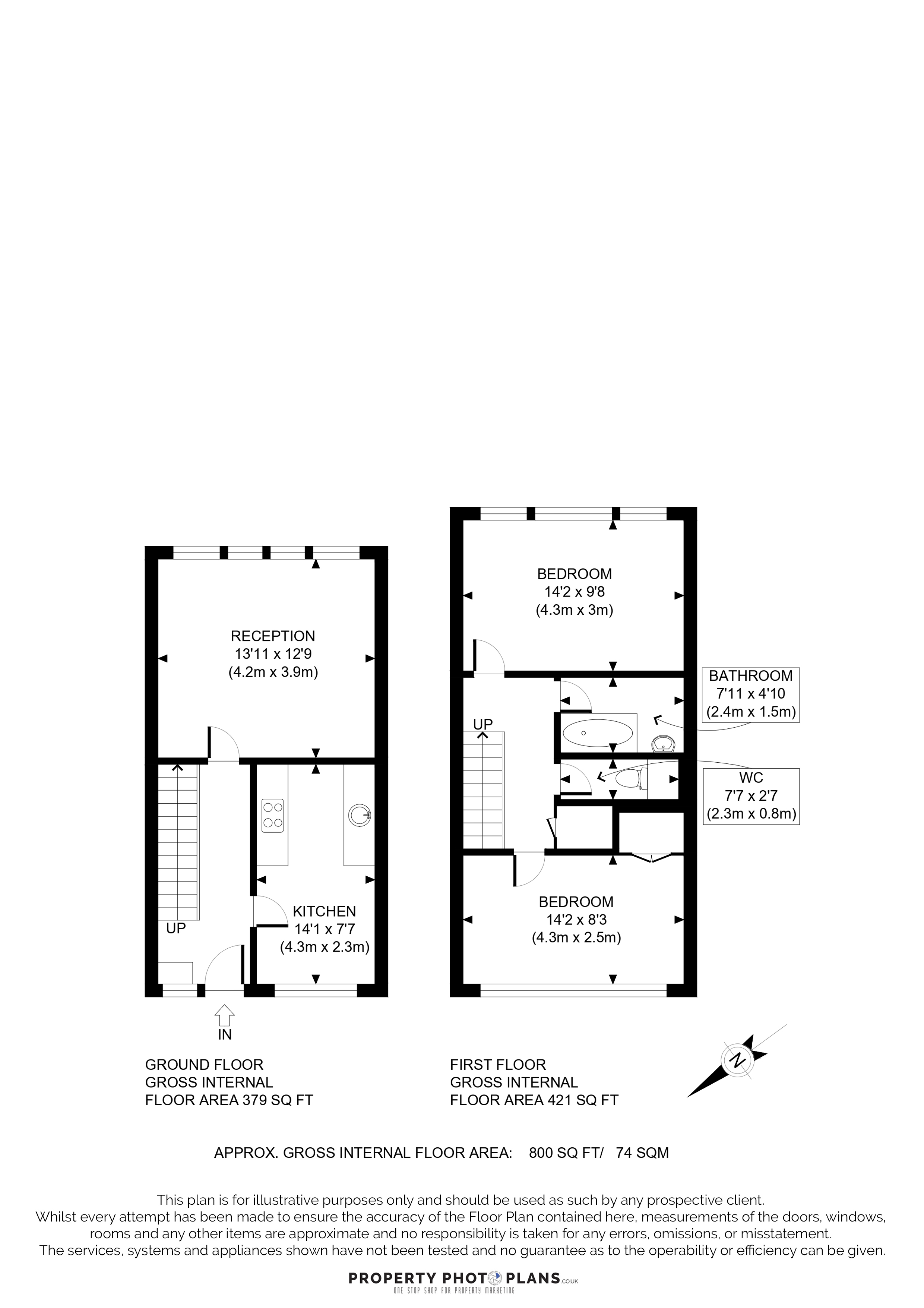 Upstairs Landing leading to both bedrooms, bathroom and toilet. Also full height storage cupboard (1.15 x 0.86). Carpeted