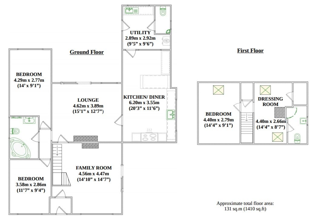 A good sized bathroom with a double glazed window, corner bath with mixer tap & shower attachment, an electric shower over the bath & folding glass screen. It includes a WC, hand basin with vanity unit/ mirror, a towel radiator, shaver point & an extractor fan. Fully tiled with laminate flooring.