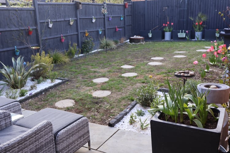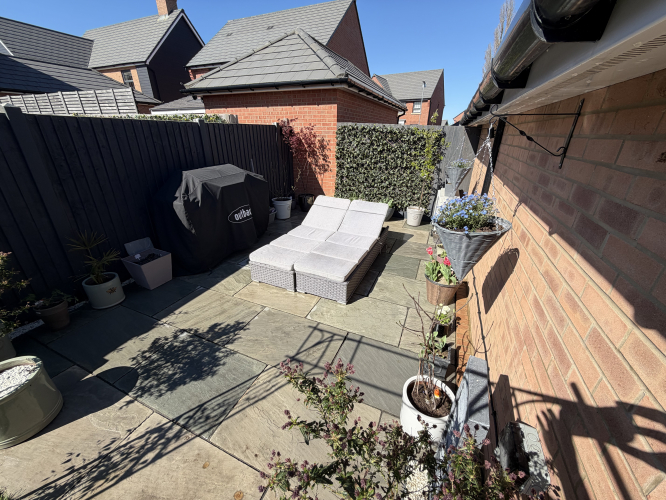 West facing, sunny L-shaped garden, with secluded patio to the rear of the garage and a further patio to the rear of the house.