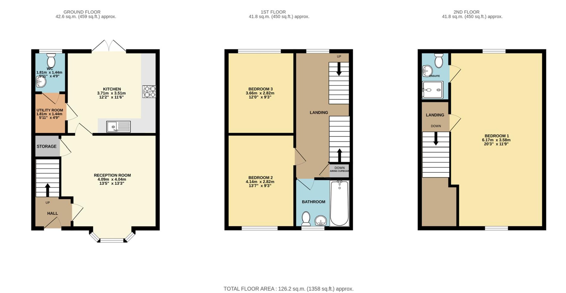 Three-storey semi-detached house with detached garage and driveway for two vehicles.