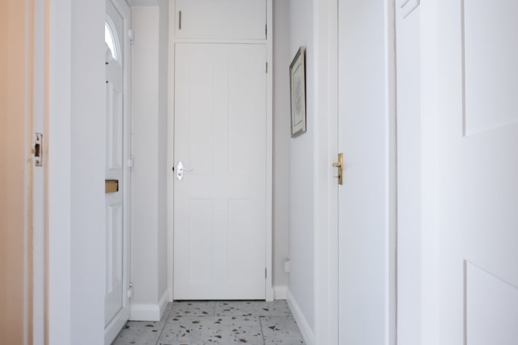 The entrance hallway is welcoming, with a window to a side aspect, and doors to the downstairs workshop and living space. There is a conveniently situated fitted cupboard for coats and shoes.