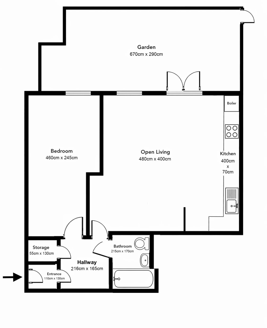• Private 6.7m fenced garden with French doors from living area