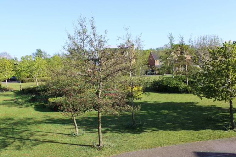 Dual aspect room with double glazed windows to the front and side over-looking the Green, radiator. Door to en-suite. (Measurements to wardrobe fronts and exclude walkway)