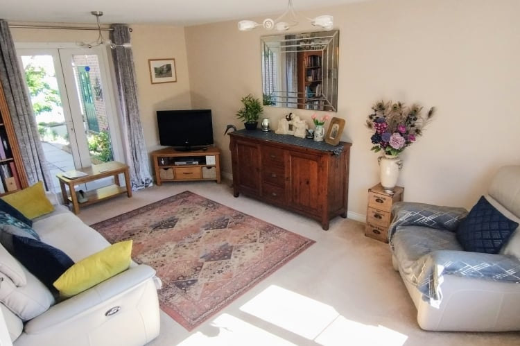 Radiator, double glazed window to the front over-looking the Green and double glazed French doors to the garden. Telephone Point and TV Point.